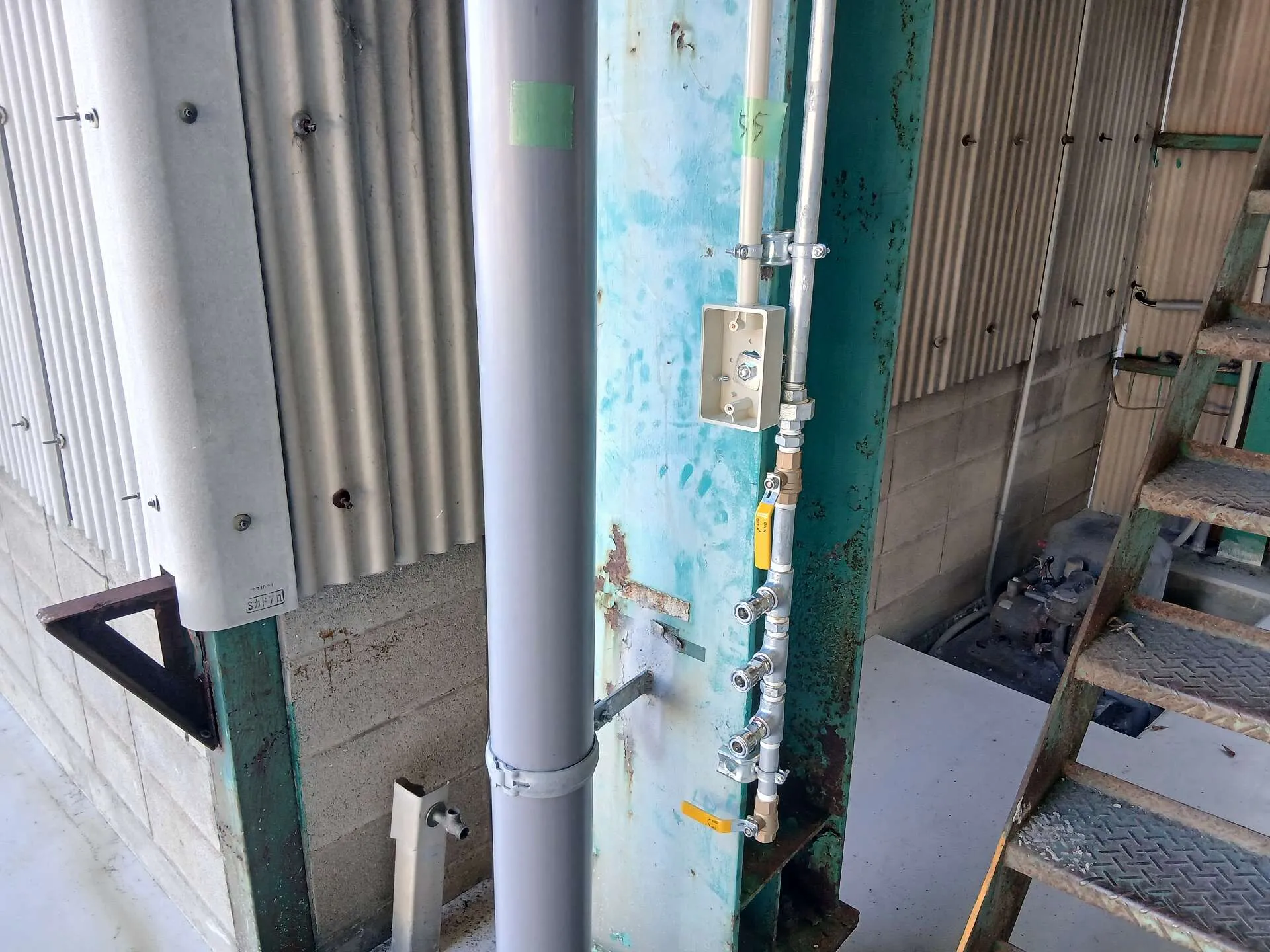 柱と天井に配管を通して固定、各所にエアーカプラーを取付!